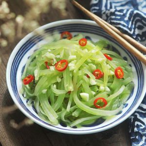 先把莴笋去皮,用小刀,从硬的那头开始把皮撕下来,后面比较簿的部位直接用削皮的刀削掉外皮就行了;去皮后把莴笋切成丝;