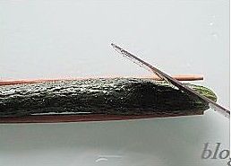 黄瓜清洗干净后在黄瓜两边放两根筷子;90度直角把黄瓜切成薄片,因为有筷子所以可以防止把黄瓜切断;