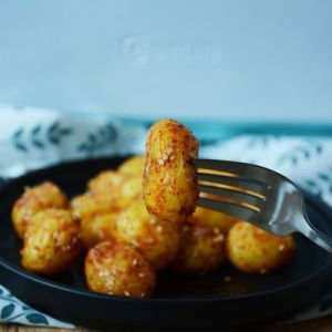 土豆块烘烤至两面金黄,略起脆皮的土豆块超级好吃