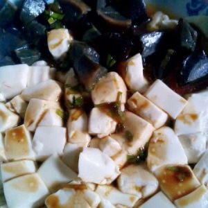 准备调味汁,浇在豆腐和皮蛋上。吃之前,稍稍拌匀。