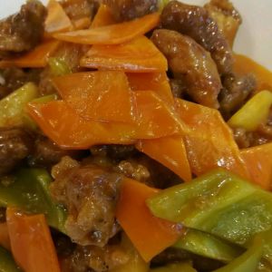 胡萝卜断生 下水淀粉勾芡 料汁粘稠下肉翻炒让汁裹均匀 盛出 完成