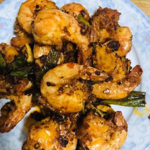 然后锅底流油 放入干辣椒 葱姜蒜 郫县豆瓣酱炒香!再把虾倒入炒锅里翻炒!再放一点点生抽翻炒几下出锅!这道菜简单 也不难吃 !郫县豆瓣酱本来就咸 口味轻的不用再额外放盐