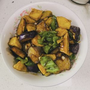 再加入炸好的土豆茄子青椒翻炒均匀即可出锅啦
