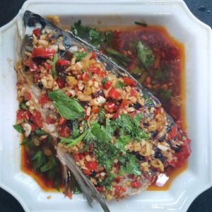 锅中烧油至八成热时淋在鱼上,一道美味的家常版剁椒鱼头就做好了!