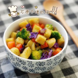 色彩诱人、营养丰富的五彩馒头丁就做好了