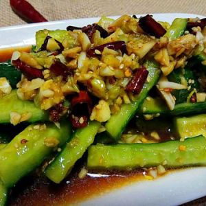 黄瓜内放入醋,芝麻油,盐,生抽调味