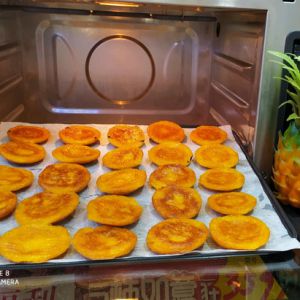 第五步:将作好的南瓜饼放入蒸烤箱中调到180度设置35分钟进行烤制。