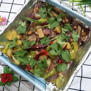 出炉后撒上香菜,香喷喷的烤鱼就完成了