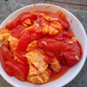 等锅热起来了把蛋液倒进去炒,大概九成熟装盘