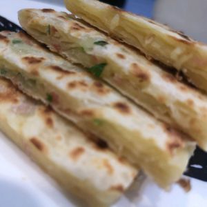 用擀面杖擀一下,正反面再抹上一层薄薄的油,入平底锅