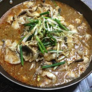 放入好人家汤料煲开一锅水,先把鱼骨放入煮到八成熟后加入鱼片,水开后关火,原锅倒入装有黄瓜的盆里。