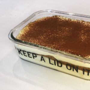 把手指饼在咖啡中沾匀、切记轻轻的沾一下就好了、千万不要太湿了。在手指饼上铺上均匀的乳酪酱。再重复一层、不需要很深的容器、足够放两层就好了。