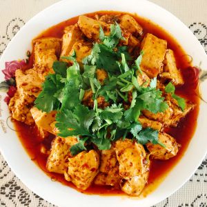 烧开后倒入焯好的豆腐开始炖制,炖制汤汁浓稠时倒入葱蒜即可