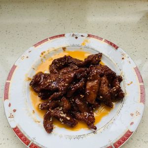 炸好肉以后,锅内留底油,放入番茄酱,糖,盐烧成酱汁,把肉倒入快速翻炒挂上酱汁。