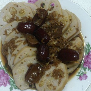 起锅,放置等凉了后,切片,摆盘。剩下的汤汁熬一会,浓稠后,浇在藕片上。