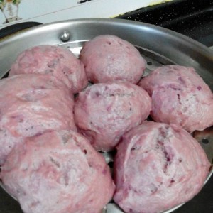 温糖水化开酵母粉、紫薯、面粉、温牛奶混合揉搓。