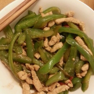 翻炒到肉熟,基本2-3分钟左右就可以(有的人青椒喜欢吃软一点的可以再炒一会儿)出锅了