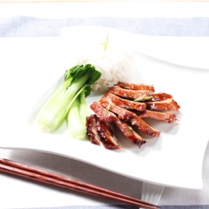 15 分钟后,取出烤盘及猪肉条为其翻面并刷汁一次。再接着送入烤箱烤15 分钟后,取出烤盘及烤好的叉烧肉即可。