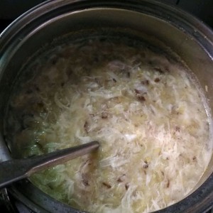 倒入调好的百合粉。黏黏的玉米羹就差不多了,在放点盐调味即可。