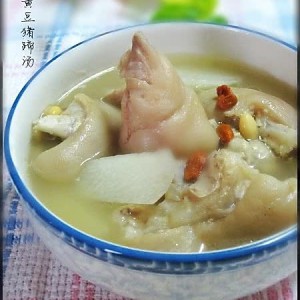 水开后撇去浮沫,加黄酒、姜、葱结,黄豆、枸杞、山楂同时倒入锅中,大火煮开后转小火。