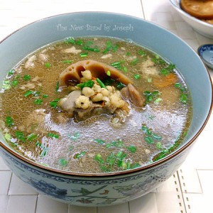 煮开后,将汤弃之不用,大骨捞起用温水洗净。