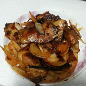 成功。。。。享用吧。很多人用大头菜什么的。我喜欢吃炒的很软的洋葱,所以有了自己发明的这个菜