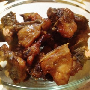 捞出时'本人是一块块排骨又在用水冲一下'用厨房纸稍微将水分吸去