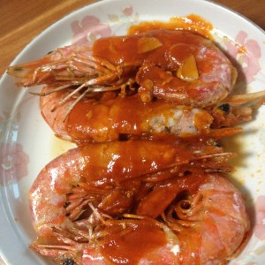 用平底锅或者炒锅把虾子煎熟。油温不要太高,一直用小火,两面煎,直到虾壳有微微发白。取出放在盘子里。