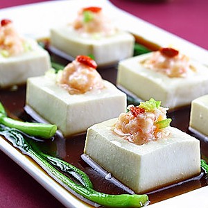 7在埋之前,先把豆腐里撒一层薄薄的生粉,这样虾进来后蒸的时候会和豆腐粘的更紧,不至于吃的时候光吃到豆腐,而虾却跌落在三千块的名牌裤子上,放完生粉,好了,埋虾.