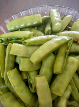 放入锅中,加八角盐,加水漫过豌豆,大火烧开