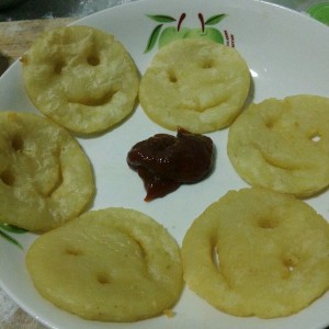 这个就不错啦,反正土豆是熟的不用炸太久,番茄酱蘸着吃味道还行,不过不像店里那样脆,软软的