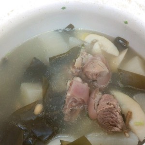 稍微煮开,揭开锅盖五分钟让汤跑跑些许腥味。