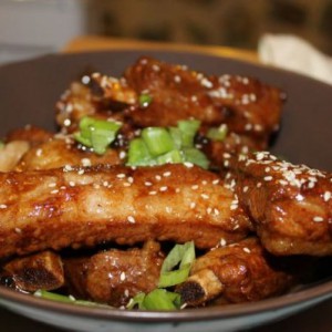 起锅,热油,把切好的蒜放油里煸一下,然后把切好的排骨放入,炒一下