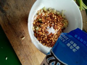 第三步:加入辣椒粉和食盐,搅拌均匀