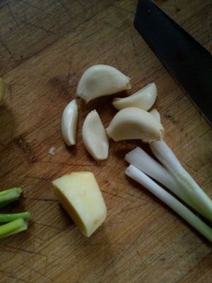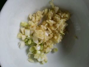 第二步:将蒜,姜,葱白切碎成沫放置于碗里,