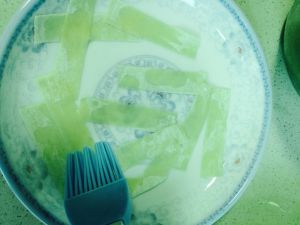 用刷子在条上刷一刷。