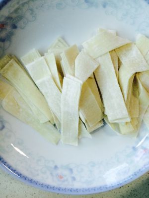 小火,放入条儿,炸至金黄酥脆即可。