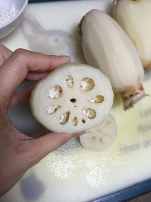 洗净去皮,把藕眼里也冲洗干净,一头切开,不要扔掉~