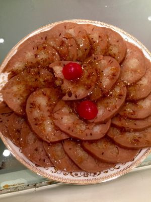 出锅放凉后,切片,最后撒一些桂花糖(淘宝有卖)就OK啦