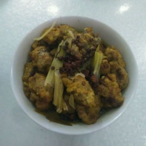 在碗中放入炸制好的鸡块,放入上述蒸料搅拌均匀后,在蒸锅中蒸40分钟即可。