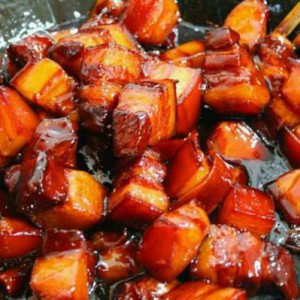 先将五花肉在沸水里煮2个小时或两个半小时然后切成块状进行腌制,腌制时把鸡精,十三香,料酒,酱油,生抽,3个葱段,2片姜调在一起腌制半个小时左右,切记千万不要放盐!