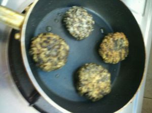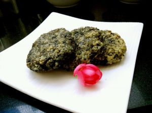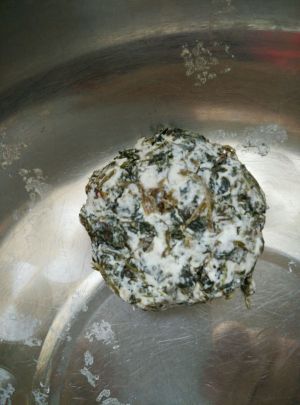 艾草洗净焯水剁碎,加入适量糖和糯米粉。团圆,按扁成饼坯子。