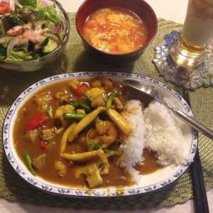 好吃的咖喱海鲜饭就做好了,配个蔬菜沙拉和汤就更完美了。