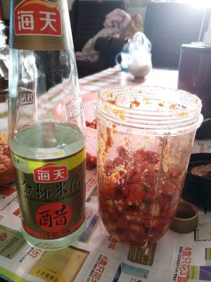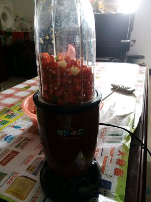 将拌好的辣椒加点白醋放入料理机打成酱,