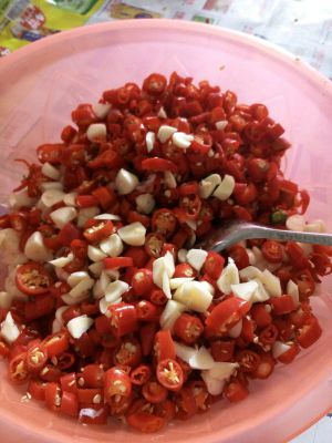带上一次性手套剪辣椒和大蒜,特别注意不能碰水碰油!
