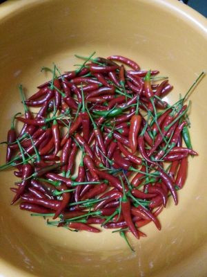 买回来的新鲜辣椒,挑选坏的出来!
