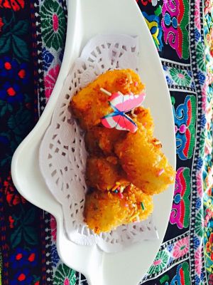 然后装盘。就这样,一道简单的不能再简单的脆皮香蕉就搞定了!可能是因为我家的香蕉已经非常熟了吧,所以甜度我觉得完全够了,所以配的几个蘸酱都没有用