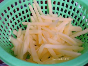 土豆去皮,洗干净切丝,浸泡,煮熟;