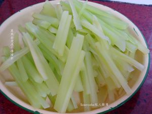 莴笋去皮,洗干净洌干水,焯水一下,洌干;