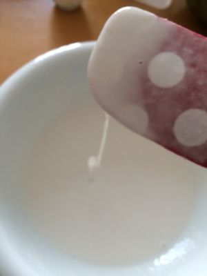 加入糯米粉、奶粉、砂糖、淀粉,搅拌至无颗粒状。拿起刮子能成线流的稠度。